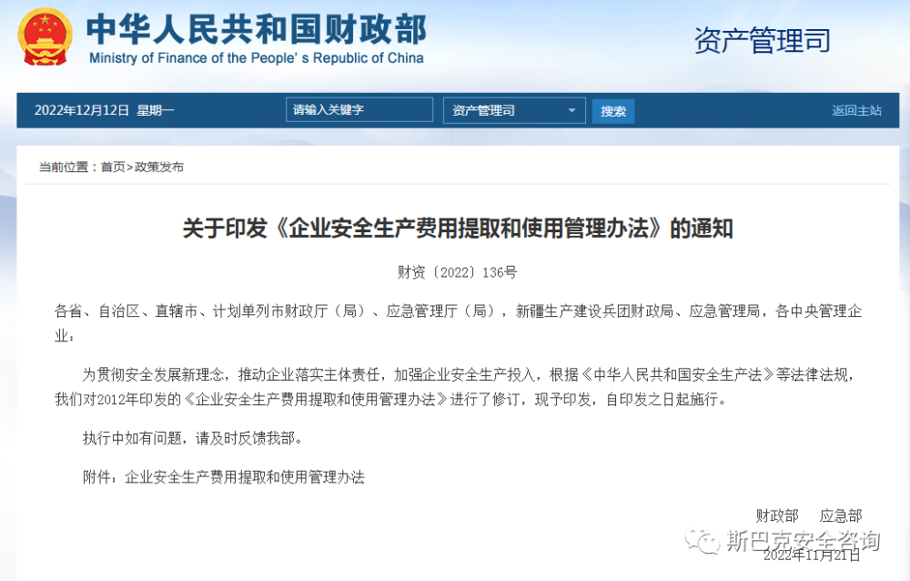 《企业安全生产费用提取和使用管理办法》