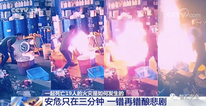 2019年9月29日12时48分40秒,宁波一家日用品加工企业的一名男员工进入香水灌装车间,调配并加热香水原料(异构烷烃混合物)。当他将加热后的香水原料倒入塑料桶时,一团火苗突然蹿起来。这名员工一系列错误行为让原本能很容易扑灭的小火酿成了无法挽救的悲剧。 他首先用嘴去吹,但火不仅没灭,反而更大了;他又拿盖子去盖 ,发现桶盖和桶并不吻合。此时,装原料金属桶内的残留易燃液体也已被引燃,紧接着,一个火点瞬间变成了两个火点。