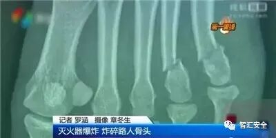 2015年3月,做废品收购的人在搬废品时看到一只过期的小号车用灭火器,正当他准备扯下保险销上的铅封时,灭火器发生爆炸,使其手骨掌炸断。