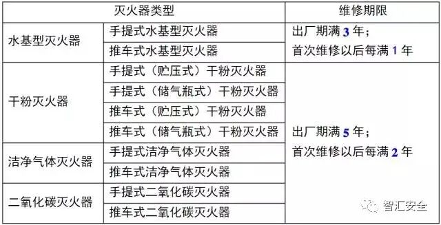 2、灭火器的维修期限应符合表5.3.2的规定。