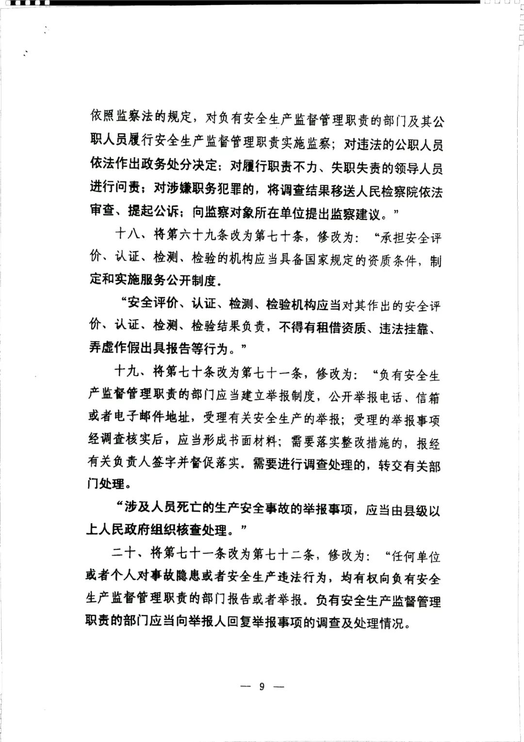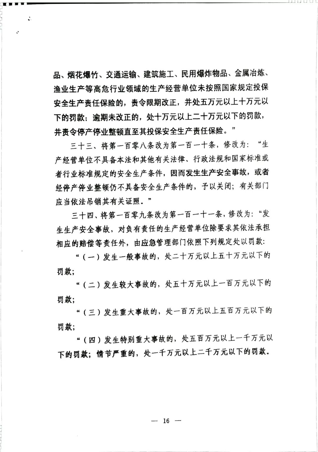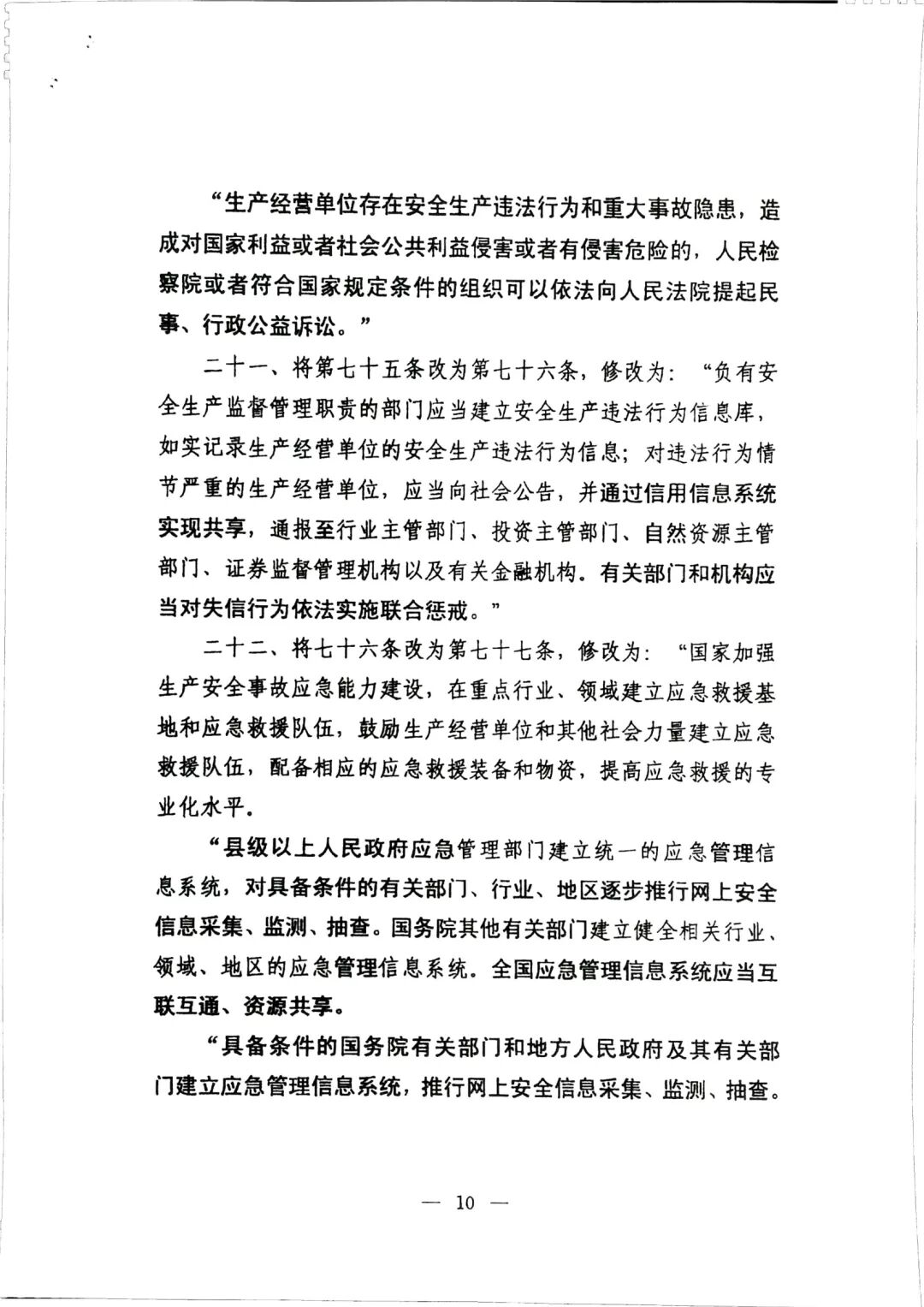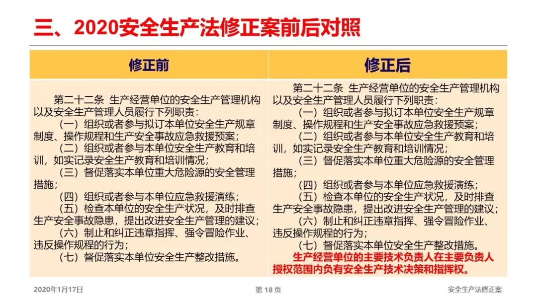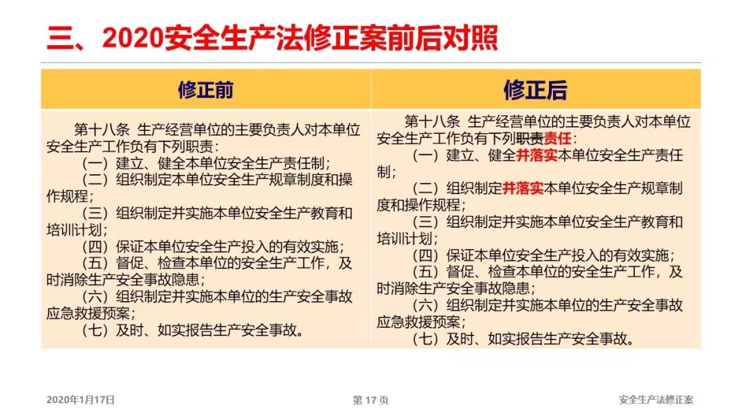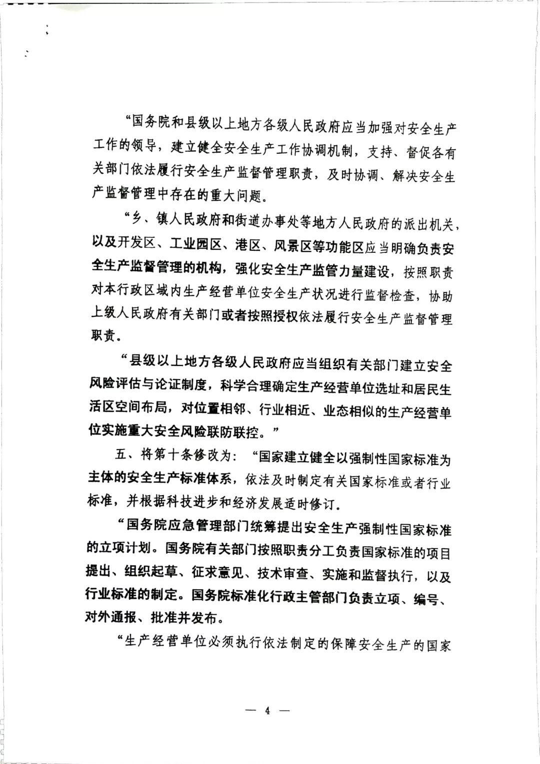 此次修订将进一步强化和落实生产经营单位的主体责任。