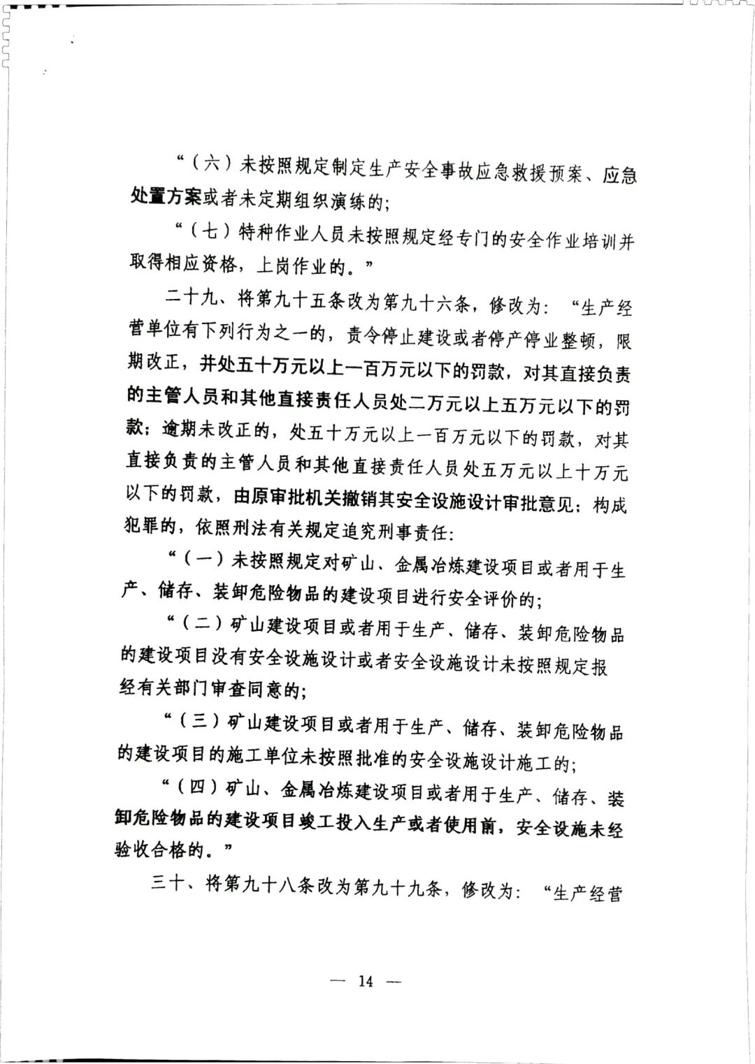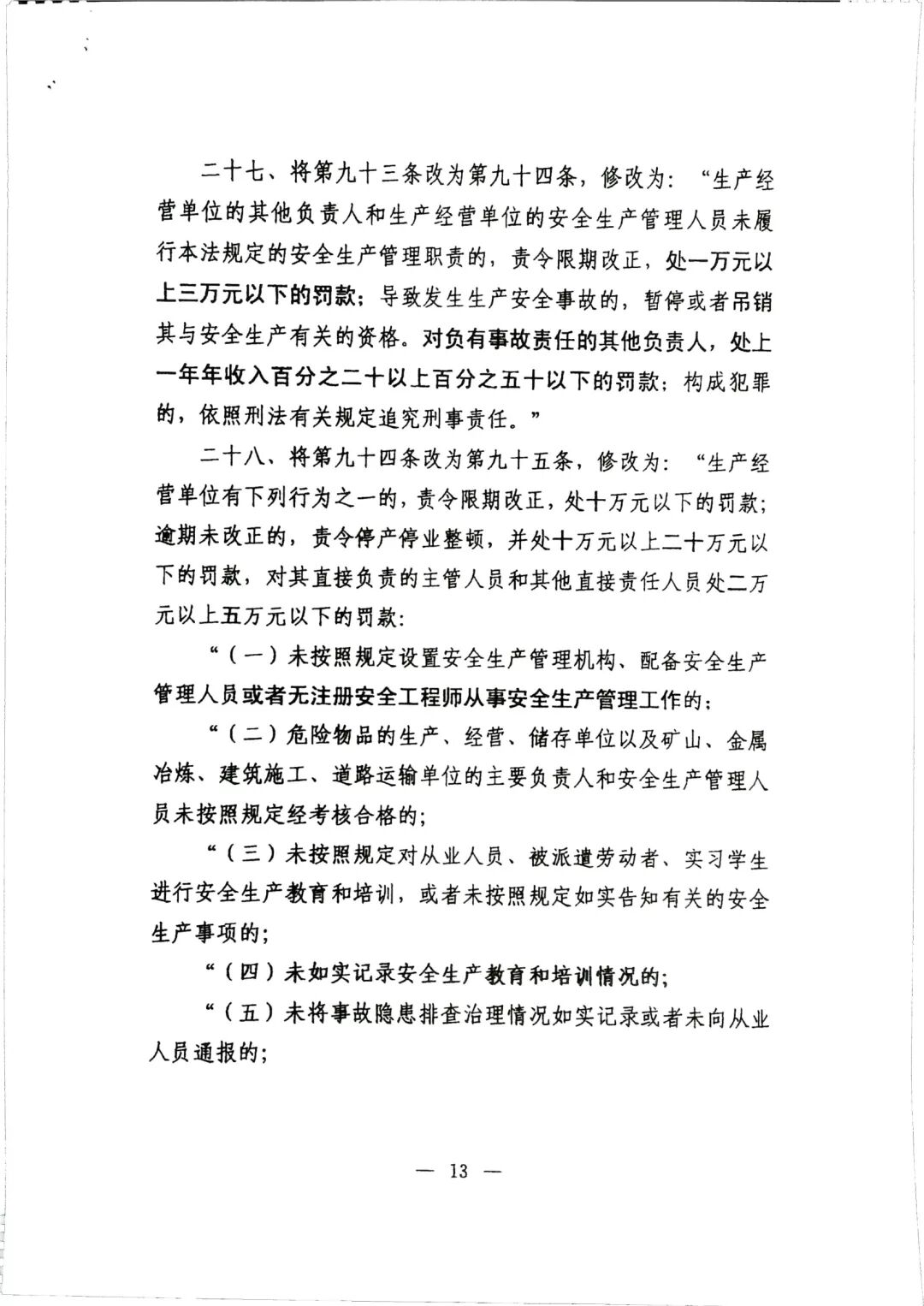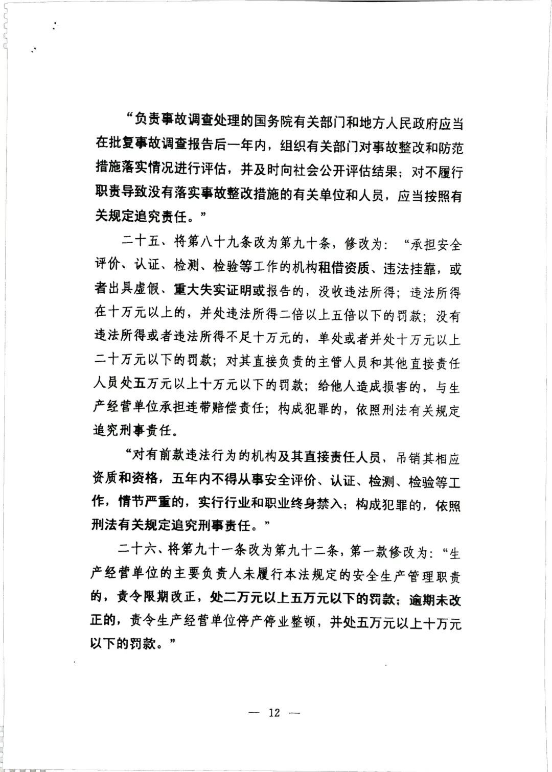 此次修订将进一步加大对生产经营单位及其负责人安全生产违法行为的处罚力度。