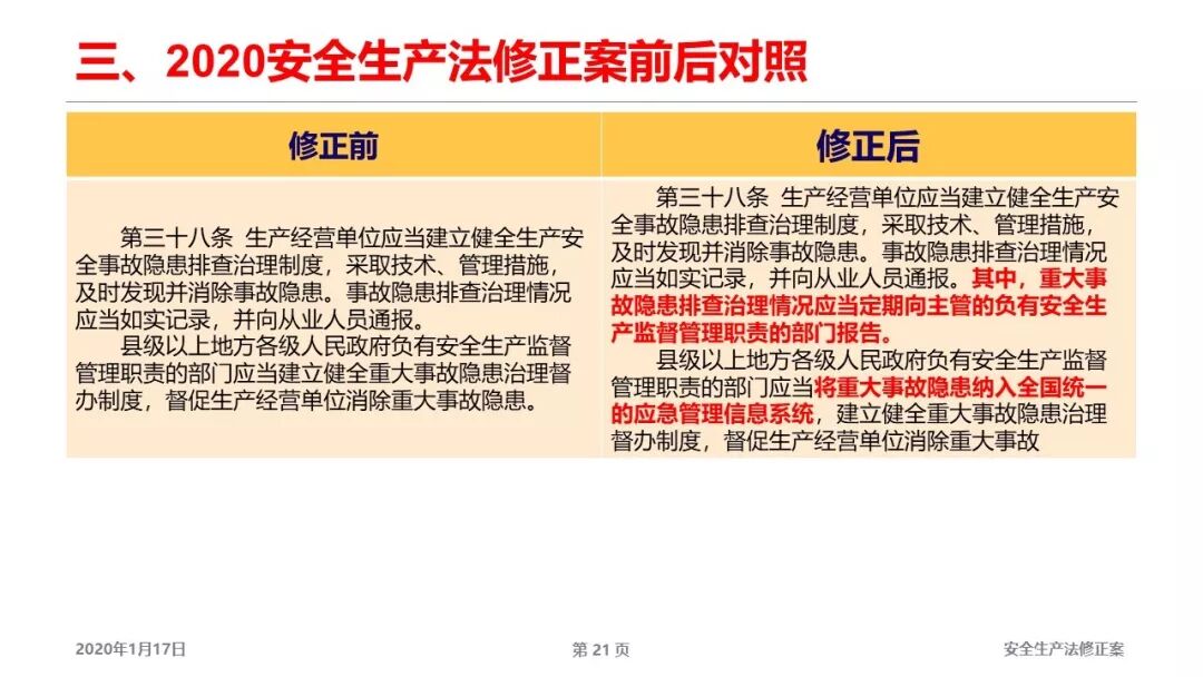1月20日,安全生产法修正草案提请十三届全国人大常委会第二十五次会议审议。截至目前,此轮《安全生产法》修订从2019年6月启动,已经历时1年半时间,《安全生产法》的立法工作已经列入2021年重点立法工作日程。
