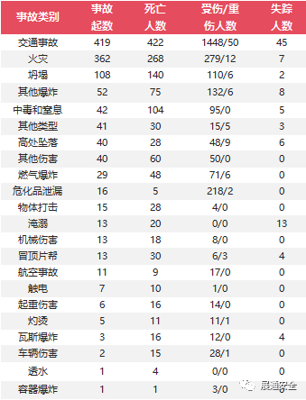 四、本年发生事故行业领域