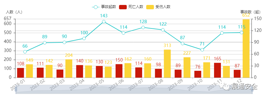 自2023-01-01 00:00:00 至 2023-12-31 23:59:59,全国报道安全生产类事故/事件共1239起, 共造成死亡1358人,受伤2570人,其中重伤101人。